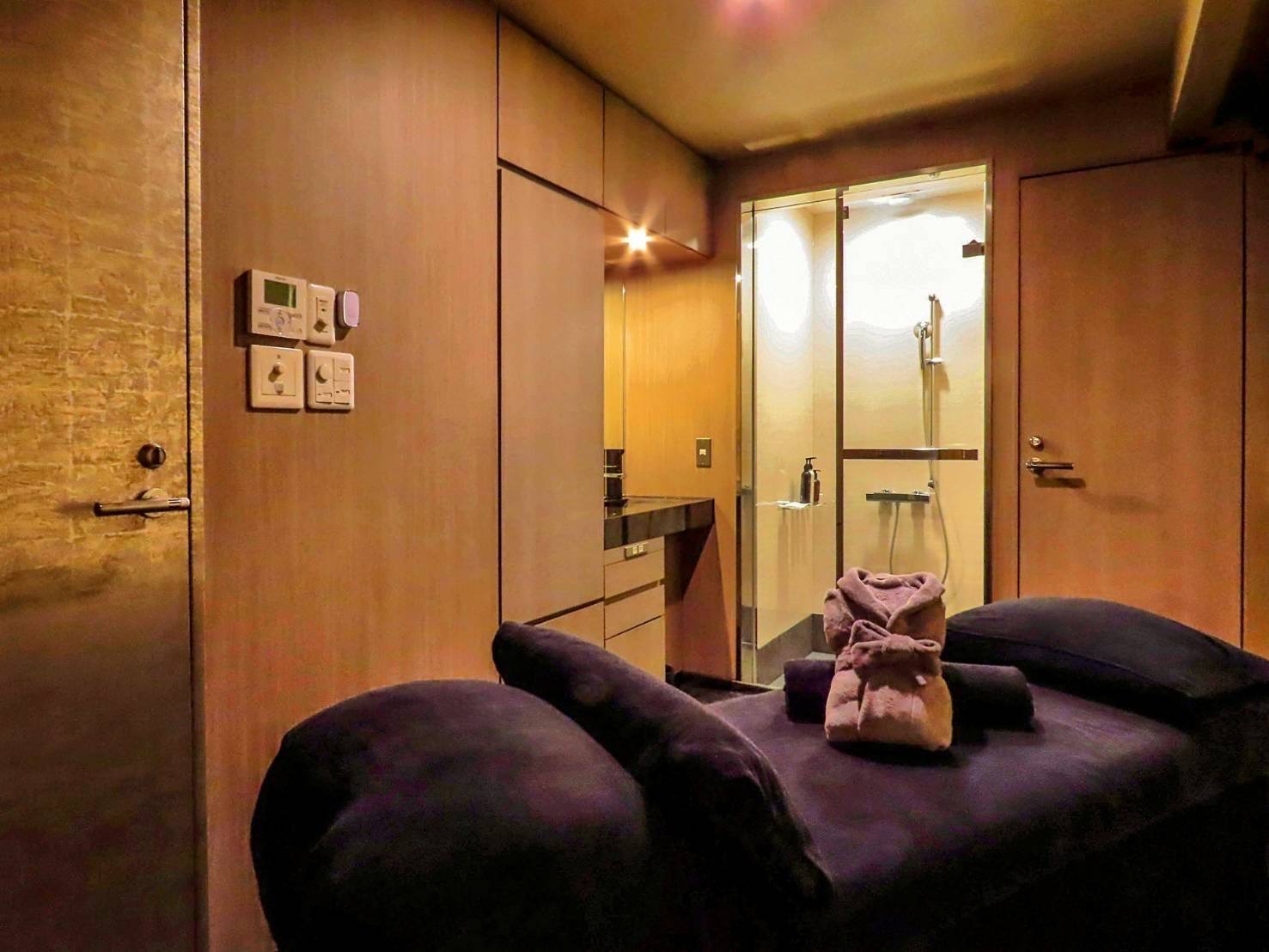 落ち着いた照明と上質な素材に包まれ、入室した瞬間から深いリラックス状態へと導きます。